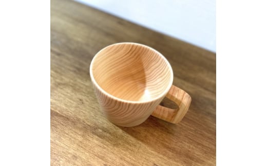 ・山梨県産ヒノキのコーヒーカップ[1個/サイズ:9cm × 7cm(取っ手を除く)]