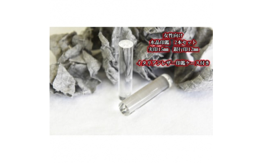 手彫り職人が彫った水晶印鑑実印15mm・銀行印12mmの2本セット(女性向け)【1312790】