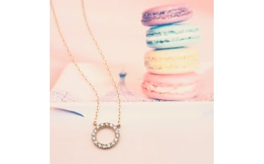 16石のダイヤモンドをトータル0.2ct使用したサークルモチーフのネックレス。