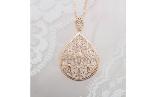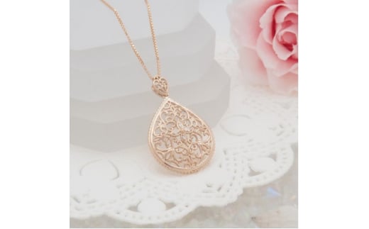 K18PG 0.02ctしずく型ダイヤモンドペンダント HH018649【1401082】