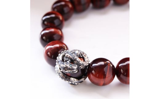 12mmのレッドタイガーアイ中心の珠に、迫力のある昇龍を巻いたブレスレットです。