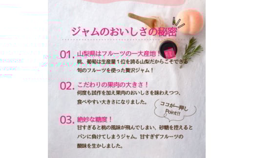 山梨県産フルーツを使った贅沢ジャム。シャインマスカット ・桃・ 黒ぶどう ジャム<80g×3本>【1596311】