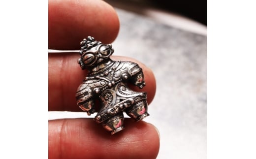 このネックレスは、山梨の熟練した宝飾原型師が、初代の遮光器土偶からこだわり抜いて制作した三作目。