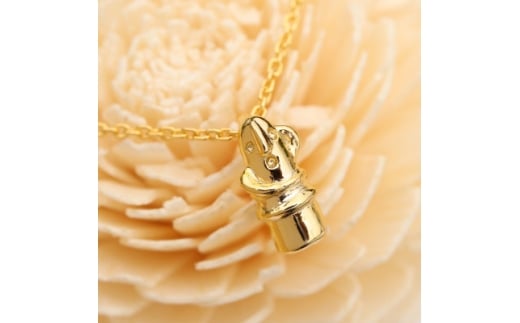 K18製なので胸元でひと際存在感を放ちます。左手をあげ楽しく踊っているかのようで、見ているだけで心が和むアイテムです。