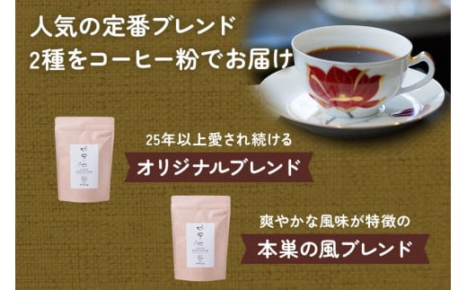 コーヒー粉 (オリジナルブレンド・本巣の風セット)【人気の定番ブレンド2種を楽しめるコーヒー粉セット】|コーヒー 珈琲 [0791]