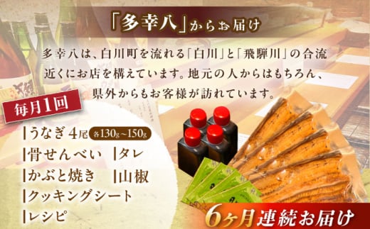 鰻【6回定期便】【備長炭】 国産 うなぎの蒲焼 4尾セット 鰻 ウナギ タレ付き 白川町 / 多幸八 [AWBL014]