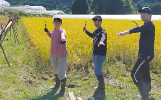 ツバメやトンボが飛び回る田んぼで栽培した、無肥料・無除草剤のお米です。