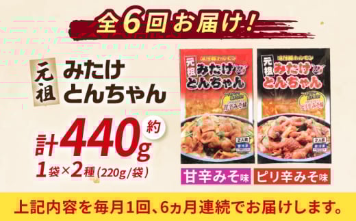 【6回定期便】岐阜県産豚もつの鉄板焼き「元祖みたけとんちゃん」甘辛&ピリ辛 各1袋(4人前) / モツ もつ 白もつ ホルモン / 御嵩町 / 藤よし [AVAA013]