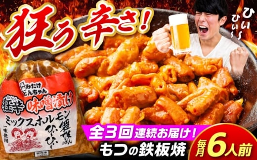 6. 【3回定期便】 「元祖みたけとんちゃん」 狂辛 味噌漬け ミックスホルモン 3袋(6人前) / モツ もつ 白もつ ホルモン 辛口 / 御嵩町 / 藤よし [AVAA067]