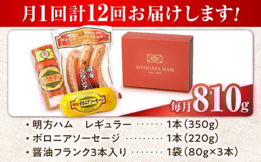【12回定期便】明方ハム詰め合わせ Aセット / 明方 ハム 厚切り ボロニアソーセージ ハムステーキ 朝食 フランクフルト ウインナー BBQ ソーセージ フランク 箱入り ギフト / 御嵩町 / めぐみの農業協同組合 [AVBA005]