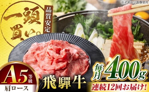 【12回定期便】飛騨牛肩ロース 400g×1パック すき焼きしゃぶしゃぶ用肉 / すき焼き しゃぶしゃぶ 牛肉 / 御嵩町 / 馬力家 [AVBO032]