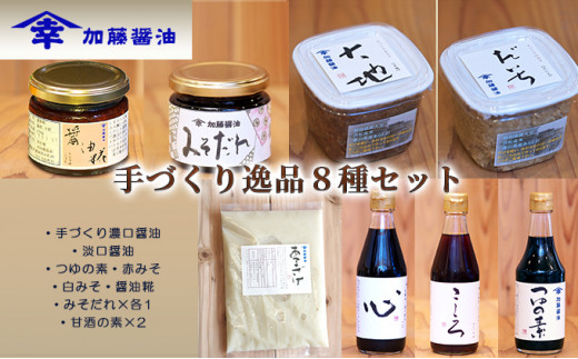 加藤醤油 手づくり逸品8種セット(手づくり濃口醤油・淡口醤油・つゆの素・赤みそ・白みそ・醤油糀・みそだれ×各1・甘酒の素×2) [№5786-1502]
