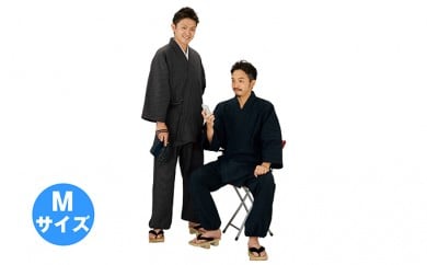 伝印 作務衣  (ドット柄 綿100%) 黒・M [№5786-1664]