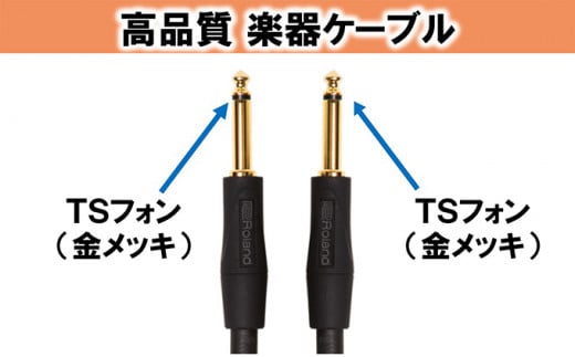 浜松の楽器メーカー「ローランド」が自信を持ってお届けする「楽器のためのケーブル」24K金メッキコネクターを採用し、オーディオ信号を正確に伝えます。ローランド・ゴールド・シリーズ ケーブルは、オーディオ信号の正確な伝送を可能にするカスタム24K金メッキ・コネクターとレコーディングスタジオ・クオリティの高純度無酸素銅線、低静電容量設計によりローノイズのピュアで高精細なサウンドを実現しています。また、低い静電容量によってクリアーで且つ原音に忠実なサウンドが得られます。TSフォン-TSフォン 1m(RIC-G3)、1.5m (RIC-G5)、 3m (RIC-G10)、 4.5m (RIC-G15)、6m (RIC-G20)、7.5m (RIC-G25)をラインアップ。