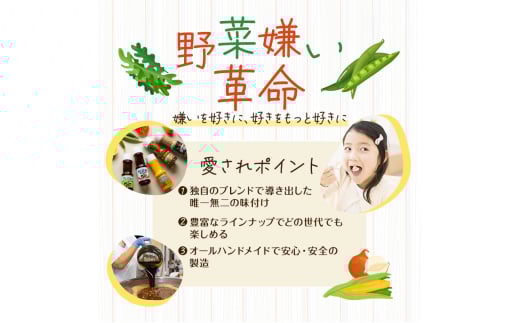 「野菜嫌いなお子様にもピッタリ!」のキャッチフレーズで浜松の皆様にはお馴染みの創業1977年のドレッシング専業メーカーが作る「野菜村ドレッシング」。中でも『Wごまミックス』は、発売以来全国各地のお客様からお取り寄せのお電話をいただく人気商品です。お豆腐やしゃぶしゃぶにもピッタリで、わざと強く焙煎しているごまを触感を絶妙に触感を残し、胡麻感をたっぷり出した甘口になっています。
