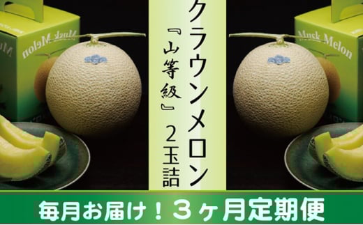 クラウンメロン 山(1.3kg以上)×2玉【3ヶ月定期便】