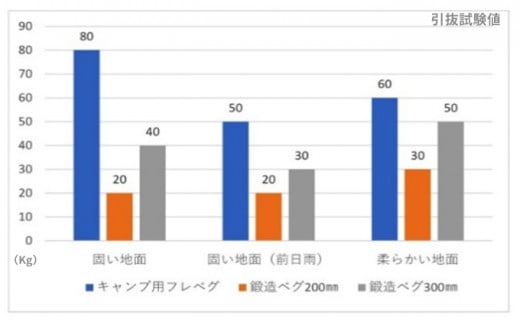 全長19.5cmでありながら、鍛造ペグ30cmと同等の固定力。(自社試験)