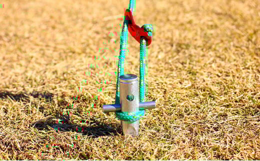 通常のペグのように斜めに打ち込む必要がなく、地面に対して垂直に打ち込むだけで十分固定できます。キャンプに慣れていない方でも、簡単に打ち込むことができます。