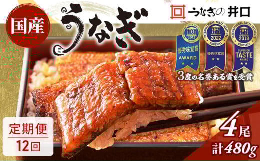 定期便12回【ITI優秀味覚賞受賞】「うなぎの井口」長蒲焼4尾セット【配送不可:離島】 [№5786-4319]