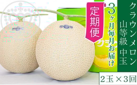 【3か月定期便】クラウンメロン【上(山等級)】中玉(1.3kg前後)2玉入り