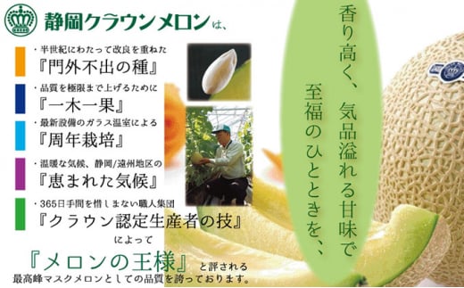 究極のマスクメロンを求める百貨店や老舗果物店からの厚い信頼を得た超高級ブランドメロン、『クラウンメロン』。認定生産者達が栽培技術を研究しあいながら90年かけて品質を高めました。