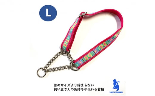 トラフィックハンドル付きハーフチョークカラーとリードのセット(ハート&マゼンダピンク)大型犬用・Lサイズ