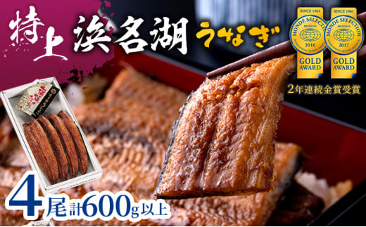 特上 国産うなぎ 浜名湖産 長蒲焼き 4尾 合計600g以上 山椒 たれ セット 詰め合わせ 国産ウナギ 国産 うなぎ 鰻 蒲焼き うなぎの蒲焼 小分け おすすめ 贈答用 冷凍 土用の丑の日 静岡 静岡県 浜松市 【配送不可:離島】 [№5786-4602]