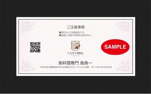 《浜松パワーフード》名物「浜名湖うなぎの刺身」が食べられる、魚料理専門 魚魚一のとってもお得で素敵なお食事券です!