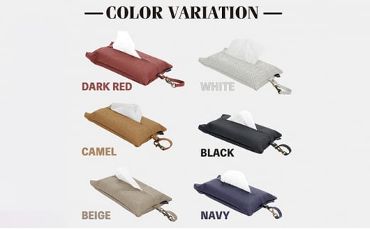 カバーの下部に取り出し口がございますので、ヘッドレストなどに掛けたままティッシュケースの出し入れができます。ループ紐は取り外し可能。リビングやオフィスなどではスマートにお使いいただけます。