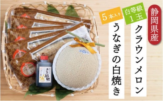 7. クラウンメロン【並(白等級)】1玉(1.3kg前後)+うなぎ白焼(120g×5尾)セット [№5786-4927]