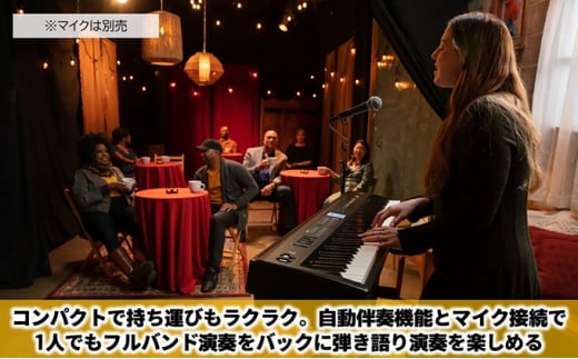 •自動伴奏機能によるフルバンド・アレンジの演奏や、マイクとボーカル・エフェクトを使った弾き語りが可能