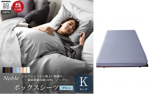 日本製 超長綿100% シルクのような艶 ボックスシーツ キングサイズ ブルー 「ノーブル」[№5786-5308]