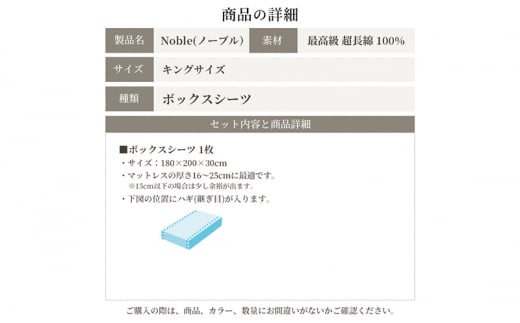 製品:ボックスシーツ キングサイズ 180×200×30cm