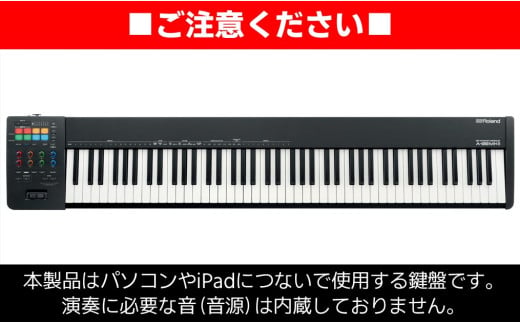 ※A-88MKII は MIDI キーボードコントローラーです。パソコンやiPadなどにつないで使用します。そのため、電子ピアノなどに内蔵されている「MIDI 音源」は内蔵しておりません。鍵盤を弾いて音を鳴らすには別途「MIDI 音源」が必要です。