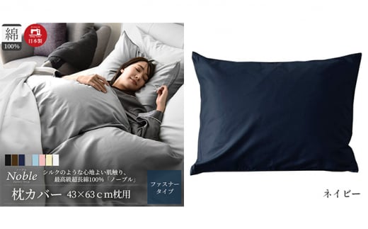超長綿100% シルクのような艶 枕カバー 43×63cm ネイビー 「ノーブル」 [№5786-5255]