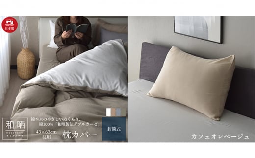 綿100% 和晒製法ダブルガーゼ 枕カバー 43×63cm枕用 カフェオレベージュ 和晒 [№5786-5266]