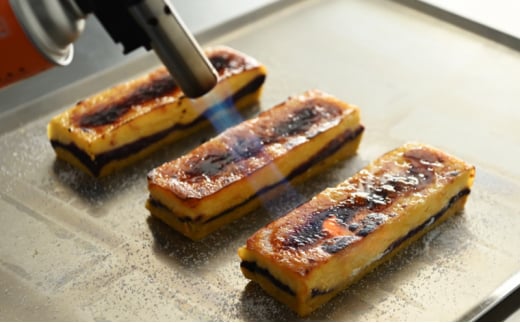 仕上げにチーズケーキの表面にたっぷりグラニュー糖を乗せ、パリッとブリュレすることで、香りと見た目を華やかに仕上げました。