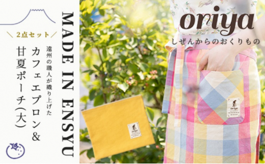 カフェエプロン(ミックスジュース)&ポーチ(甘夏)セット 遠州織物 織屋 キッチン用品 おすすめ 人気 職人 よかったもの [№5786-5406]
