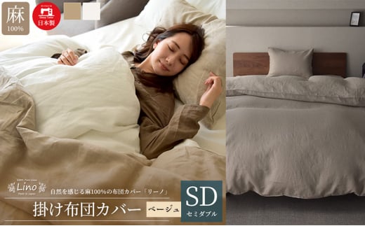 麻100% リネン 掛け布団カバー セミダブルサイズ ベージュ 「リーノ」 [№5786-5605]