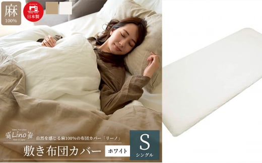 7. 麻100% リネン 敷き布団カバー シングルサイズ ホワイト 「リーノ」 [№5786-5608]