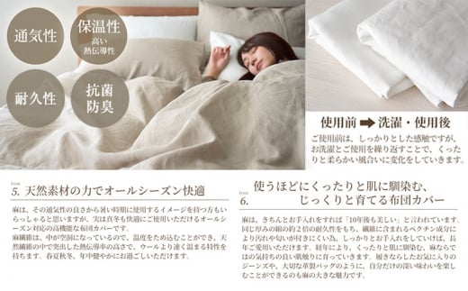 フランス北部やベルギーなどヨーロッパの上質なリネンを使用したカバーリングシリーズ。 国内縫製だから、丈夫で高品質。 「国際規格エコテックス100認証商品」で安心にも配慮しました。ベージュカラーは天然の繊維そのもののカラーで、染色加工などは一切しておりません。そのため、織り糸の産地や入荷時期によりカラーにバラツキがでます。