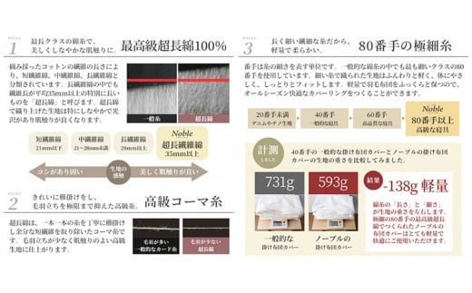 7. 超長綿100% シルクのような艶「ノーブル」 ベッド用布団カバー 4点セット ダブルサイズ ホワイト [№5786-5634]