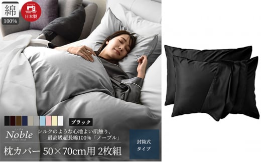 7. 超長綿100% シルクのような艶 枕カバー 2枚組 50×70cm枕用 ブラック 「ノーブル」 [№5786-5686]