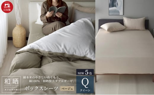 綿100% 和晒製法ダブルガーゼ ボックスシーツ クイーンサイズ ベージュ「和晒」 [№5786-5705]