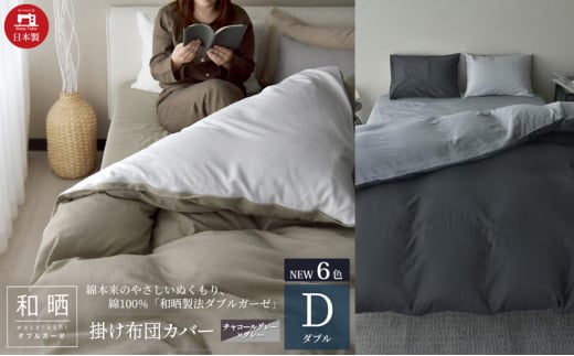 綿100% 和晒製法ダブルガーゼ 掛け布団カバー ダブルサイズ チャコールグレー×グレー「和晒」 [№5786-5719]