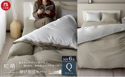 綿100% 和晒製法ダブルガーゼ 掛け布団カバー クイーンサイズ グレージュ×ホワイト「和晒」 [№5786-5729]