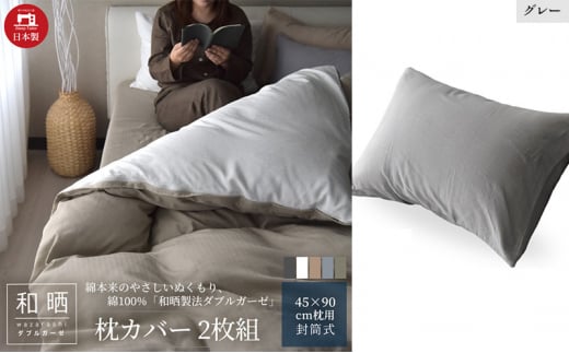綿100% 和晒製法ダブルガーゼ 枕カバー2枚組 43×63cm枕用 グレー「和晒」 [№5786-5750]