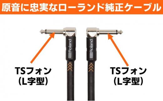 浜松の楽器メーカー「ローランド」が自信を持ってお届けする「楽器のためのケーブル」不要なノイズを取り除き、クリアな音を再現します。ローランド・ブラック・シリーズ ケーブルは、高純度無酸素銅線と不用なノイズを除去する高密度スパイラル構造によってプロフェッショナル・クラスのクオリティを実現しています。高品質コネクターと低静電容量構造によって原音に忠実なクリアーなサウンドが特長です。TSフォン(L型)ーTSフォン(L型)30cm (RIC-B1AA)、1m (RIC-B3AA) をラインアップ。