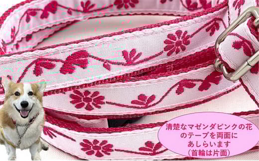 7. 【中型犬用・Mサイズ】 ハーフチョークカラーとリードのセット(マゼンダピンクフラワー) [№5786-5592]