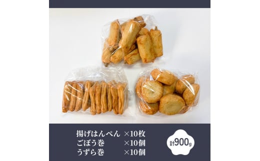揚げはんぺん3種セット 揚げはんぺん10枚 ごぼう巻10個 うずら巻10個 計900g さつま揚げ 静岡県 浜松市 [№5360-0027]
